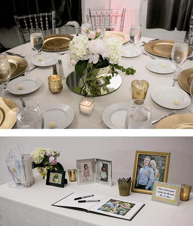 Décor: Masterson’s Catering; some DIY decorations; uplights by Jay Campbell; tables and chairs by The Foundry at Glassworks