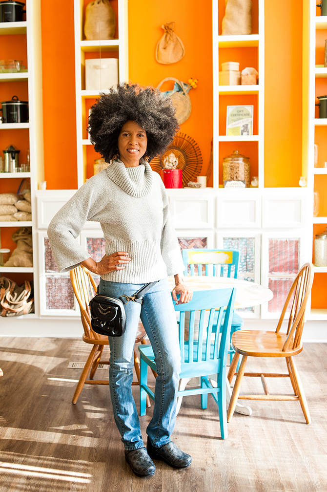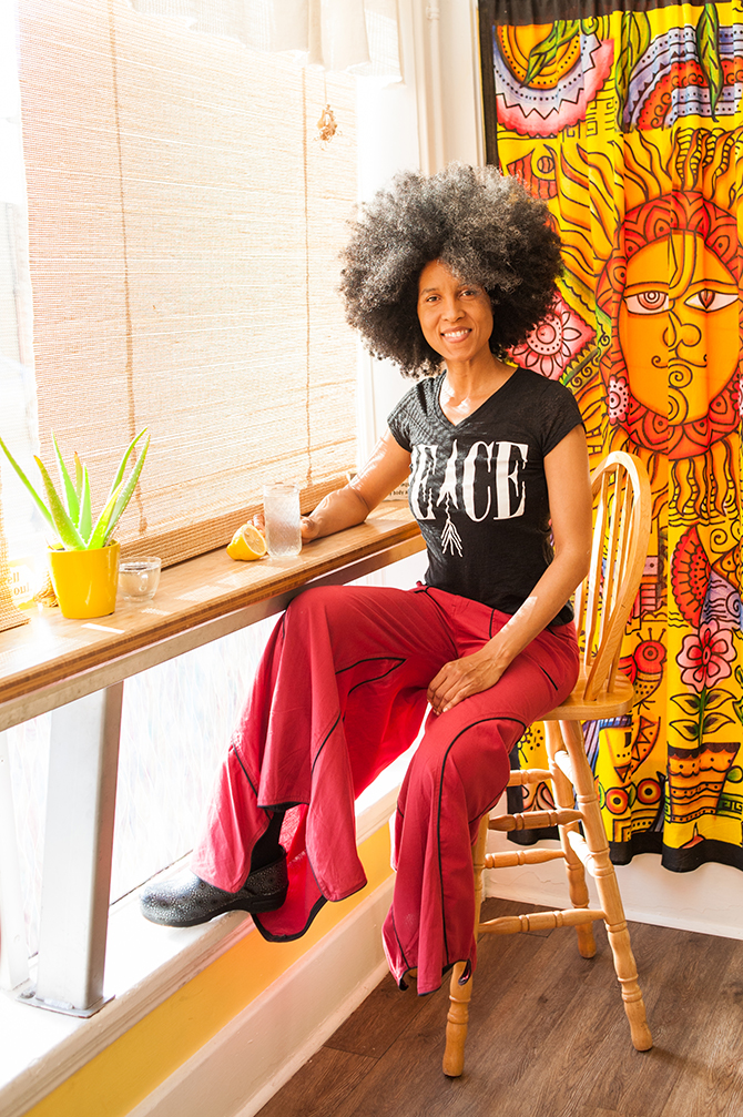 She credits both lemon water and coconut oil as her go-to beauty products. While the lemon water detoxifies and cleanses from the inside, she relies on coconut oil to moisturize and purify the outside. “I also plop a bit into my morning smoothies to glean a myriad of other health benefits,” she says. Whether she’s cooking up delicious vegan meals or practicing energy healing, Adriena, 44, knows what it takes to keep her mind, body, and spirit in check.