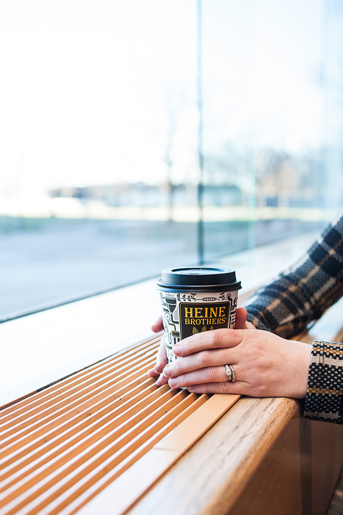 Whitney Adkins, 32, is the director of marketing for StageOne Family Theatre on Main Street. To ensure her motor runs efficiently throughout the day, Whitney enjoys a warm, decadent Caramella latte from Heine Brothers before she heads into work. “I usually grab one from the Main Street location,” she says.