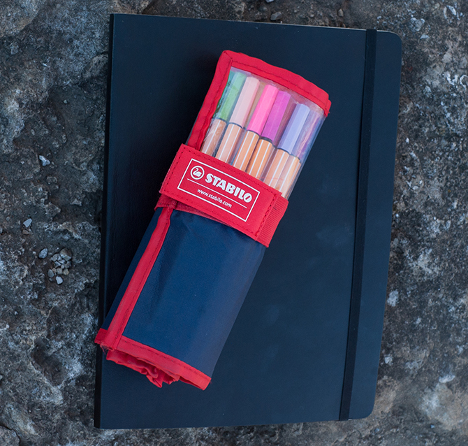 “I’ve gone all in on the bullet journaling trend,” she says. On her person at all times is her Moleskine journal and colored Stabilo pens.