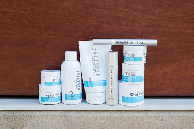 Whitney is a Rodan + Fields consultant, and she swears by their products. “I use the Redefine regimen, which contains peptide technology to help defend against and reduce the visible signs of aging,” she says.
