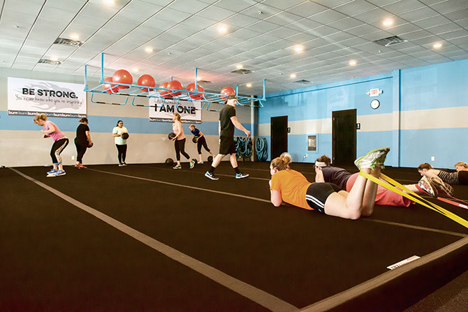 Class: One hour Burn Boot Camp, six stations; four reps of each station with instructor Camryn Fields