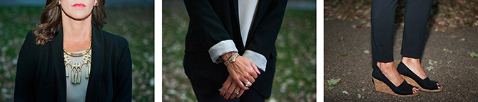 Tracking south to footwear, her mom’s style still influences her everyday choices. “My mom always wore high heels,” Crystalyn says. And while Crystalyn loves wearing heels, it’s not always practical for her job. In the fall and winter, Tom’s booties adorn her feet. “My wedges have become my new high heel,” says Crystalyn, who wears this type of heel to avoid sinking in the grass during property inspections.