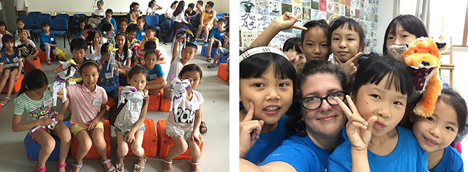 “I fell in love with the children (ages 6-12),” she says as her face lights up in the retelling of her adventure. “I gained a respect for how hardworking and intense everyone was. At the end of the week the children performed a show in English for the parents and teachers. The kids made sock puppets on their own and put on a thank-you performance for us. Then all the sudden it was over and the children were gone.”