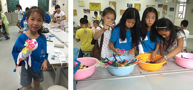 On the second day of class her luggage finally arrived with the puppet-making materials she had packed. Originally there were to be 50 children in the weeklong workshop. They were selected from a group of applicants, but then 30 additional children, whose parents were in the government, were allowed to join as well.