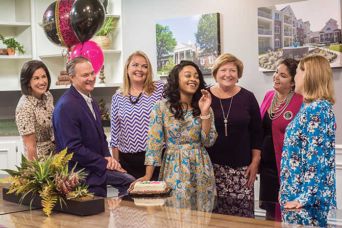 “I was scared at first being the youngest in the corporate office and the first African-American. But everyone embraced me. As you have projects, you become closer to your team.” Several marketing team members helped her celebrate her birthday.