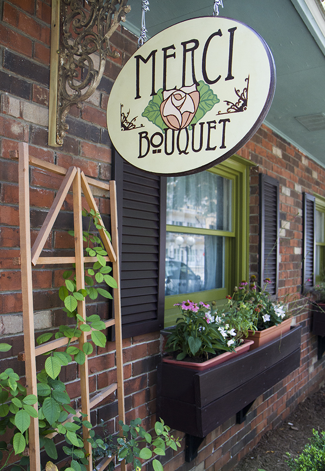 Carrie Ann Foster and her business partner, Amy Jo Goforth, give a new meaning to one-stop-shop. But Wal-Mart employees need not worry, the partners’ specialty is in weddings. Their friendship blossomed after meeting through various social circles. Amy has 15 years of experience as a floral designer, plus a connection to the wedding industry. Carrie Ann has as much artistic experience as a graphic designer. With encouragement from Carrie Ann’s mother, the duo decided to open a cottage-style shop in downtown New Albany called Merci Bouquet.