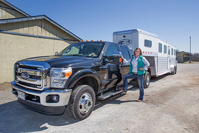 Now this 35-year-old woman from Oldham County spends most days in her black Ford 350 Super Duty pickup truck, driving horses from farms or training facilities to race tracks and back again.