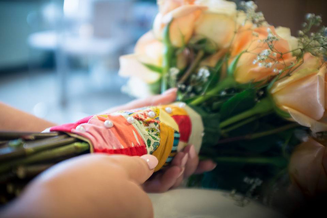 My bouquet, which I arranged myself was wrapped in a piece of a quilt that my great-grandmother made. It was my something old and was beautifully sentimental. |
