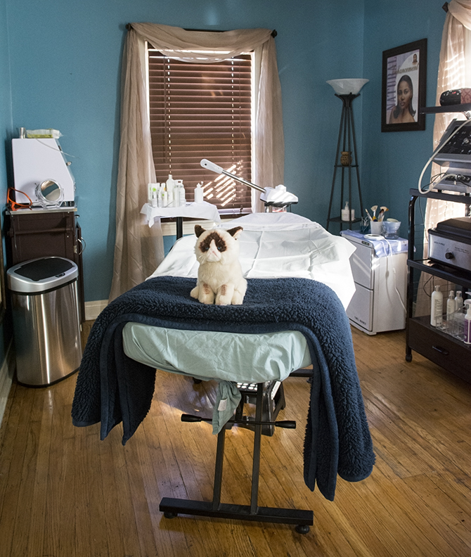 | Denise has a collection of plush animals she keeps in her salon for clients to ease their stress. She refers to them as “stress animals.” |