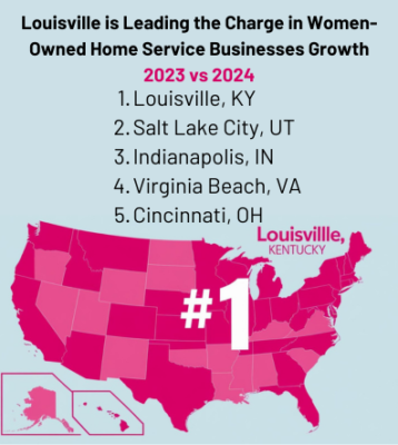 According to the latest data, Louisville saw a 53% increase in women-owned home service businesses from 2023 to 2024. To put that into perspective, the national average growth rate is just 11%—so yeah, we’re absolutely crushing it.