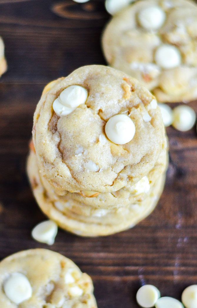Fold in the white chocolate chips and macadamia nuts until evenly distributed. Cover the dough and chill in the refrigerator for at least 3 hours. After it’s chilled, remove the dough from the refrigerator and allow to slightly soften 10 minutes. While you wait, preheat oven to 325°F.