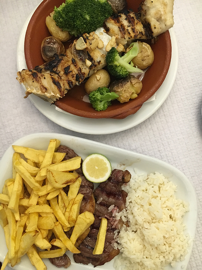 | If you love meat and fish, you can find plenty of it in Libson. A typical meal is either sea bass or steak and papas. |