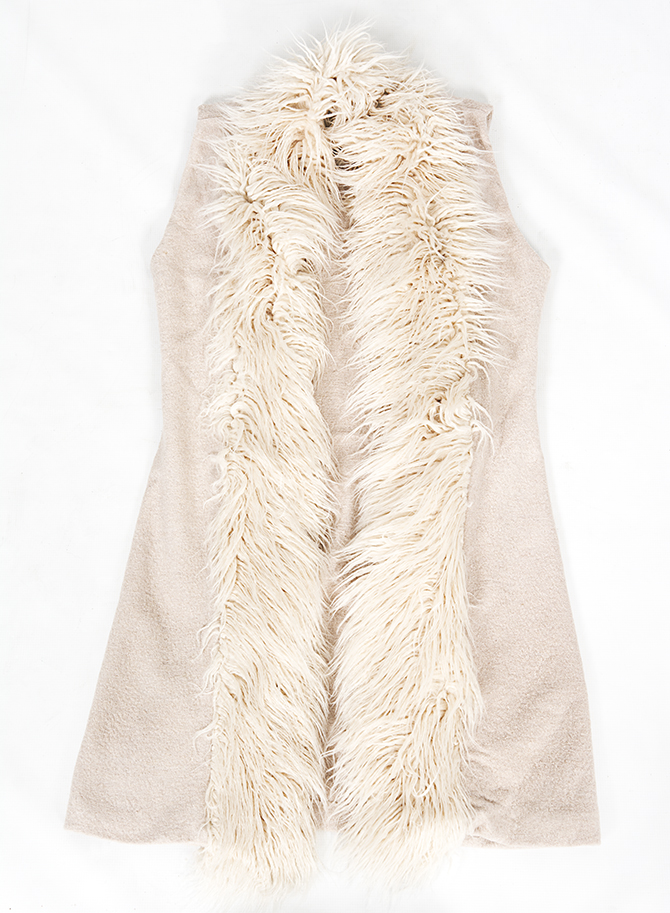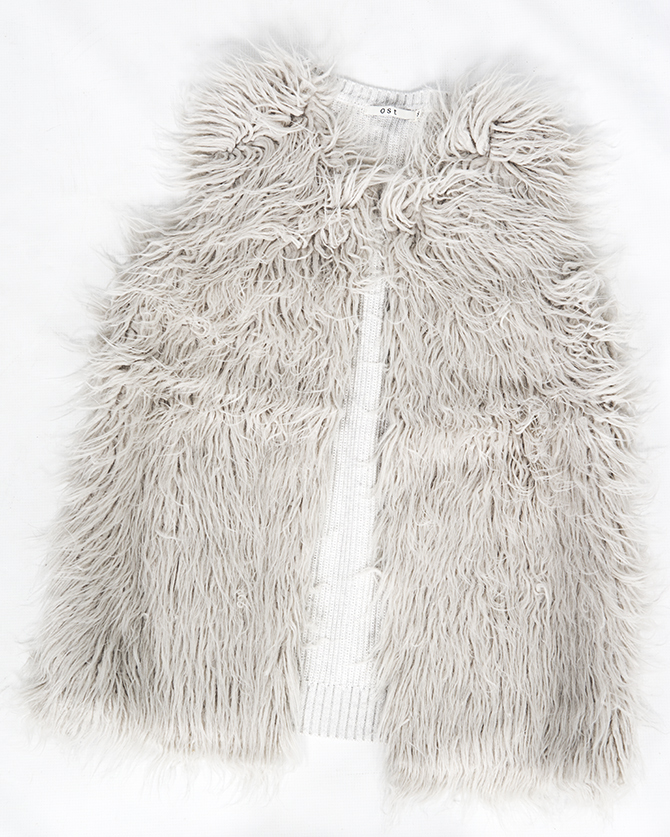 Shearling. It’s a fluffy, shaggy material that can be fancy, casual, or anywhere in between – even look for this in scarves.