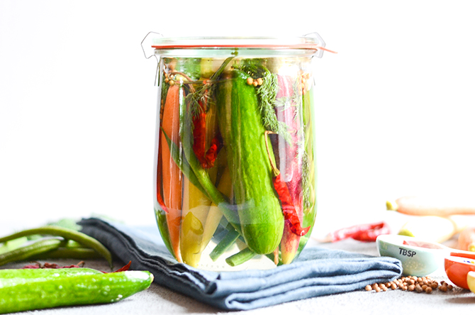 By now, your gardens are probably starting to fill with the fruits (and veggies) of your labor. Giant zucchini, juicy watermelon, and sweet heirloom tomatoes make all of your TLC worth the time and effort. But, what do you do with it all when it starts taking over your counters? Pickling is a great way to preserve your produce while completely transforming its flavor. Whether used to dress up a Bloody Mary or served on the side of a burger, these sweet and spicy pickled veggies will add a zesty bite to any summer meal and use up your garden bounty.