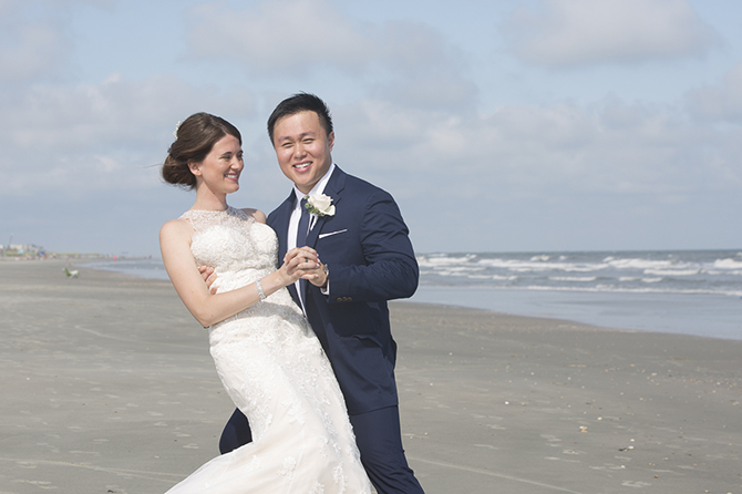 Earlier this year Hayley Anderson and Nathan Liu married in a summer destination wedding on a beach in Charleston, South Carolina in front of 45 guests. “Walking down the aisle to my groom on the beautiful beach of Isle of Palms” is the bride’s favorite memory but she says she also loved spending time with close family and friends in Charleston.