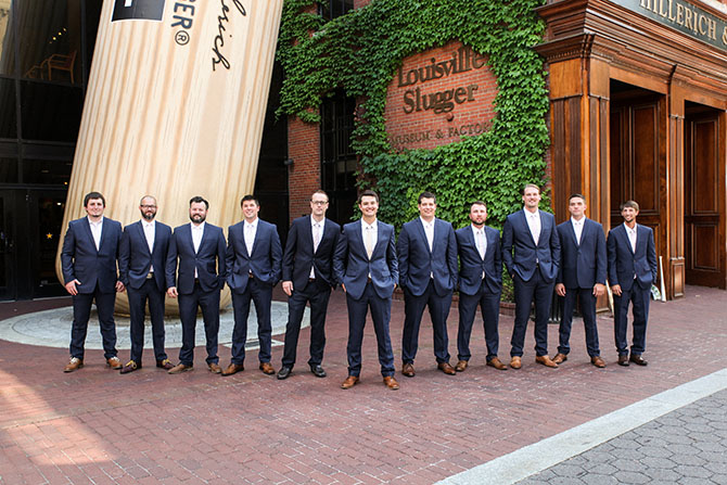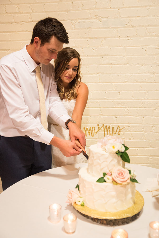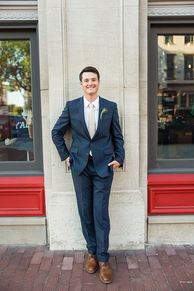 Why it worked: It ended up being cheaper to have the groomsmen buy their suits from Macys, rather than rent tuxes. I knew I wanted the guys to wear a navy suit and the fit on these were great for all body types! And now all of the guys have a nice suit to wear again, which is a win! All of the groomsmen wore pale pink ties and the groom wore a gold one. I liked how there was a variation so that the groom stood out on his special day!
