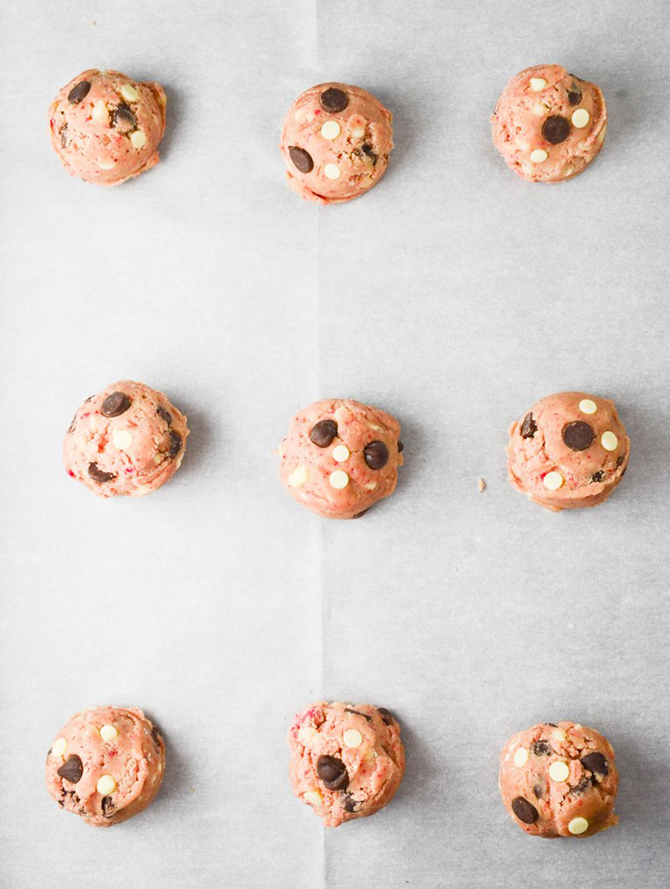 Fold in the white and chocolate chips until evenly dispersed. Cover the dough and chill in the refrigerator for two hours, or up to three days.