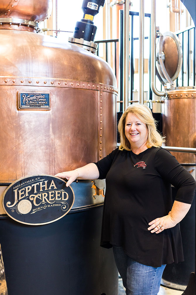 A lifetime of career moves went into preparing her for this great venture. She earned a chemical engineering degree from the University of Louisville’s Speed School, worked as a process engineer in a distillation unit, spent six years teaching high school chemistry and physics, then shifted gears to become the CFO of her husband’s companies for a decade, and, last but not least, learned the art of growing the perfect heirloom tomato. Now, a lifetime of skills from farm to finance have come to fruition. Joyce Nethery, co-owner and master distiller of Jeptha Creed Distillery, is raising a glass to her future while honoring the past.
