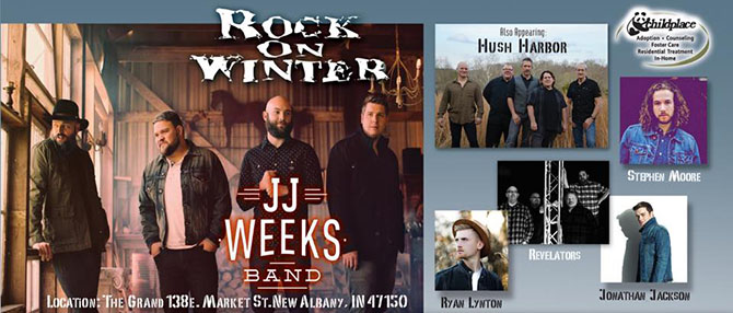• Check out Rock On Winter 2018, a Christian Concert at The Grand in New Albany, Indiana, with JJ Weeks Band, Stephen Moore, Hush Harbor, Jonathan Jackson, Revelators, and Ryan Lynton. Donations of new bath towel sets and/or new wash cloth sets for Childplace will be accepted, and food will be for sale.