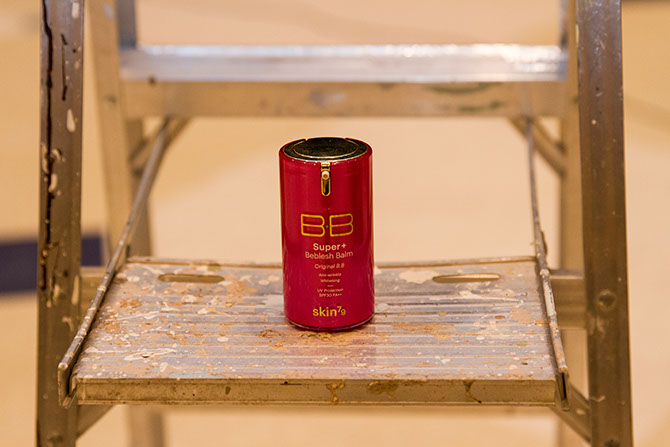 This is a moisturizer with a little bit of tint that I use instead of foundation. It is super lightweight. I use the one in the pink container — it is for light skin — and there are creams for other skin tones as well. It also has sun protection. It settles nicely and there’s no cracking. I’ve become a big fan of Asian beauty products — the BB cream comes from Korea. I also use Japanese facial sheet masks. I have very sensitive skin and wasn’t having much luck with American products. They were making my face break out. The Asian products seem gentler on my skin.
