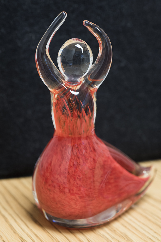 This glass figure is a prototype of the Women’s Center Empowerment Award.