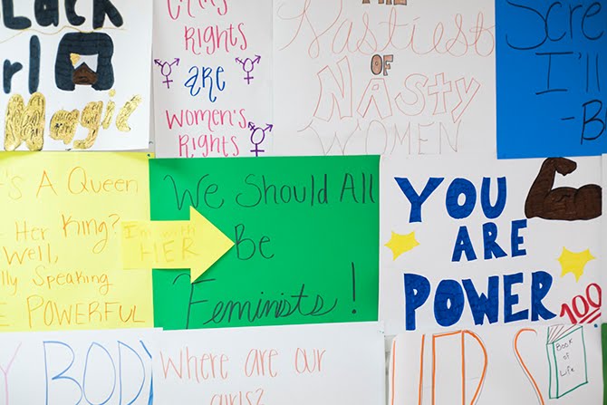 These posters were created by women who participated in a protest. Photos by Melissa Donald