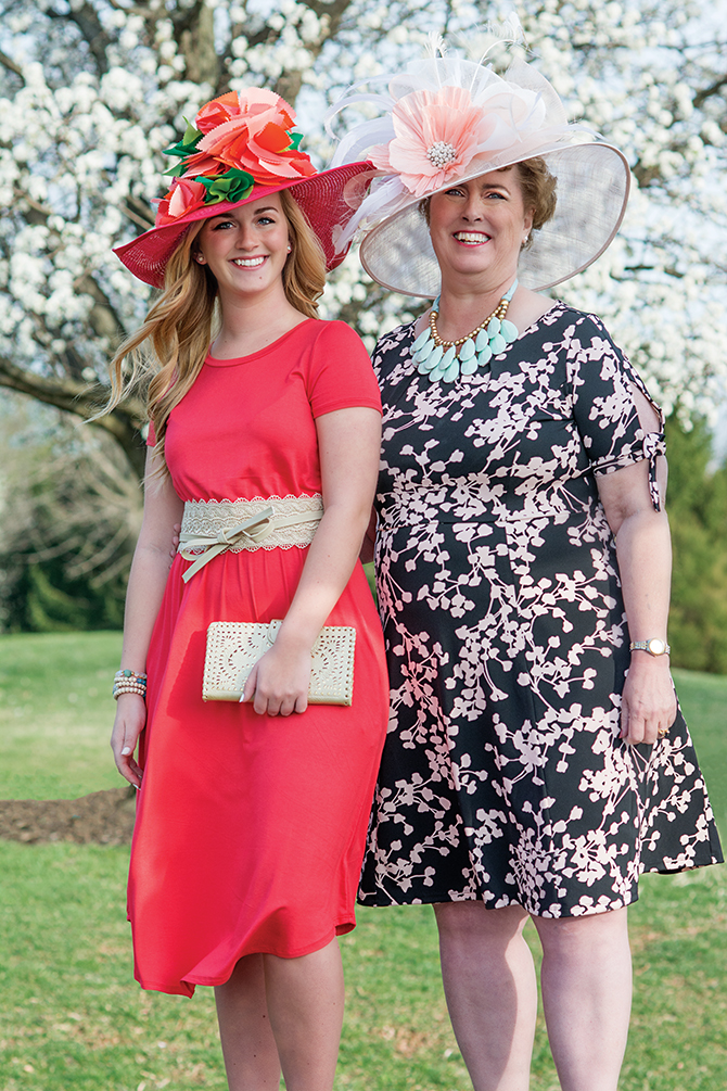Kay Russell is wearing: Hat by Dee’s, $279, 5045 Shelbyville Road, 502.896.6755; dress, $149 available at Talbot’s 194 N. Hurstbourne Parkway, 502.423.9445; necklace, $42, bracelet, $18 available at Magnolia & Fig 12621 Shelbyville Road, 502.253.4567. Kellen Russell is wearing: Hat by Christine A. Moore Millinery, $730 available at Rodes For Her 4938 Brownsboro Road 502.753.7633; dress, $46, belt, $16, earrings, $16, bracelets $16/ea. available at Magnolia & Fig, 12621 Shelbyville Road 502.253.4567.