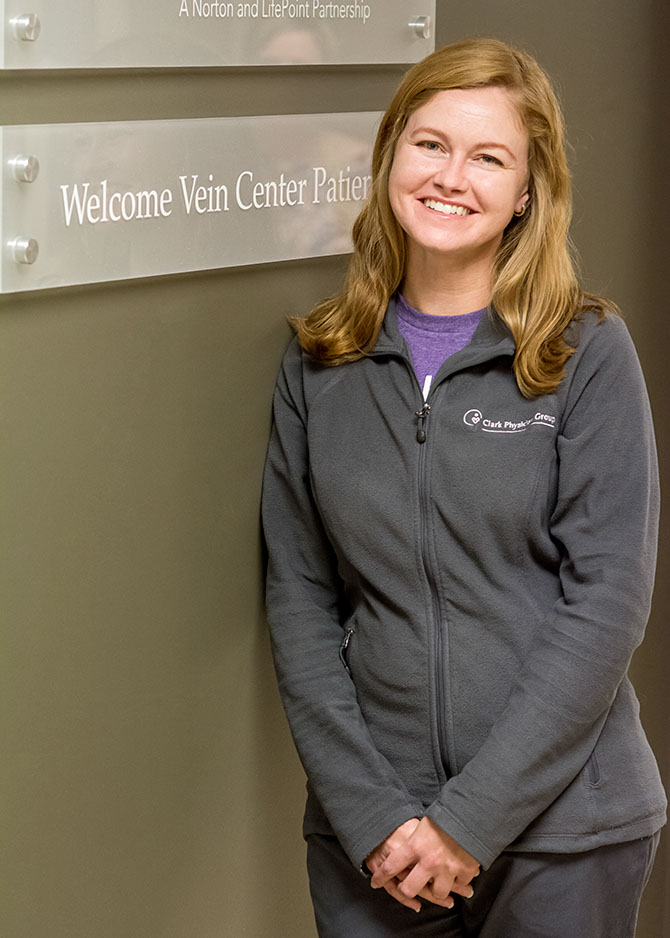 Alicia tried sclerotherapy — a vein removal treatment offered at the Clark Physician Group Thoracic and Vascular Surgery Center. Using a small gauge needle, Marla Beeler, APRN, injects asclera — a sclerosing agent — into the spider veins, which scars the vein better than saline. “The vein doesn’t have the reaction to saline, because saline is like saltwater. It is less of an irritant to the vein, but the whole goal is to irritate the vein so that it scars off,” Beeler says. The body absorbs the blood vessel and uses the healthy blood vessels instead, which resolves the spider vein.