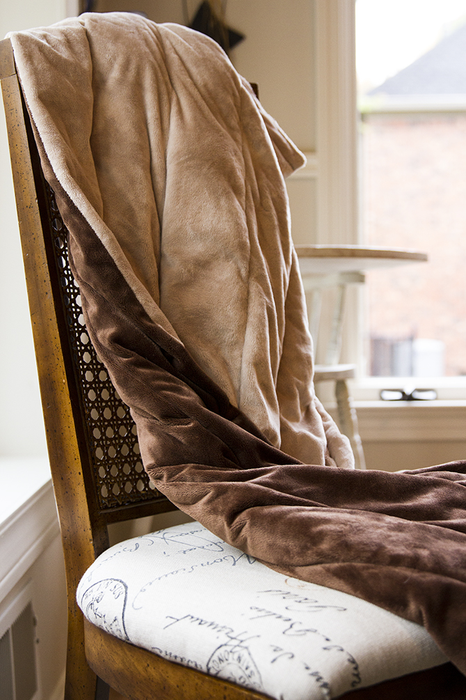 Marilynne uses this weighted blanket for alleviating pain and discomfort. Photos by Patti Hartog